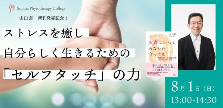 山口創先生の新刊「皮膚はいつもあなたを守ってる:不安とストレスを軽くする「セルフタッチ」の力」発売を記念した講座が、8月1日(日)にソフィアフィトテラピーカレッジ主催で開催されます。